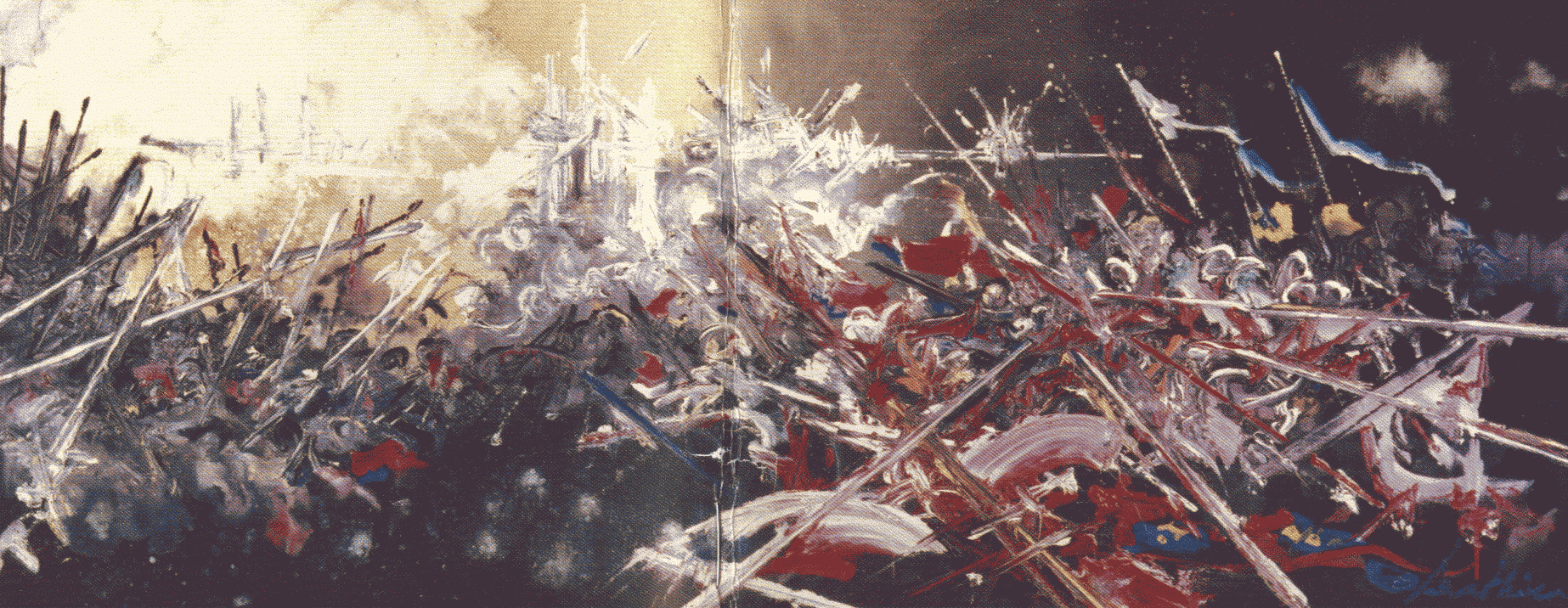 - Alles ist Euer!" Sie setzt über den Graben, entreißt dem Soldaten die Fahne, pflanzt