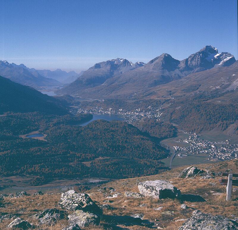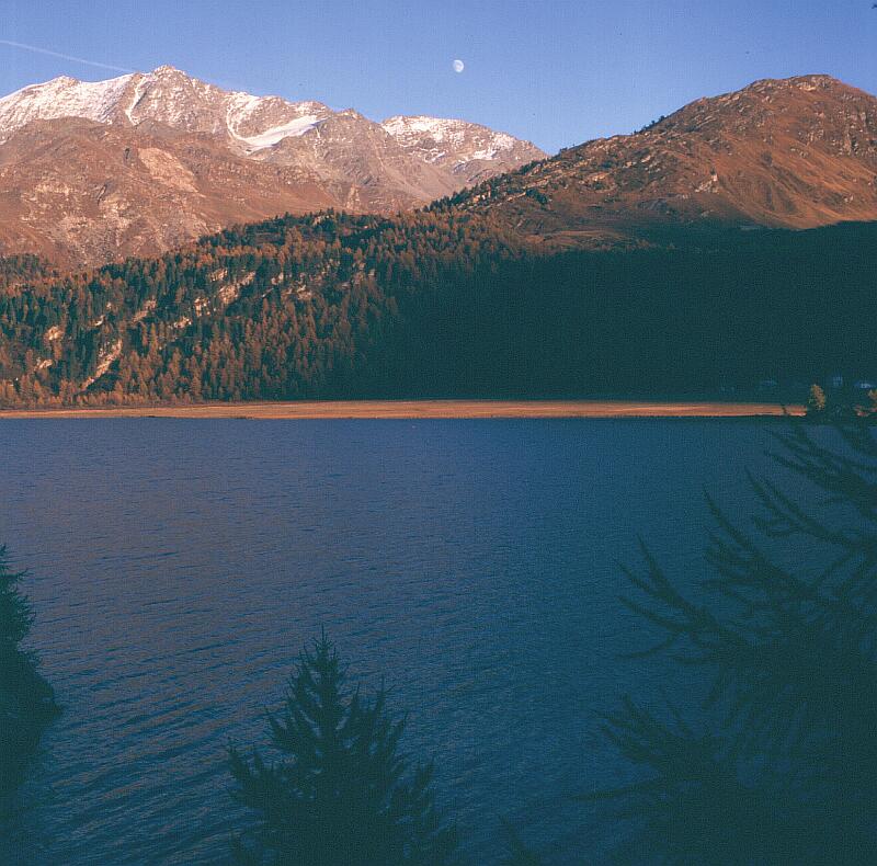 Schweiz, Oberengadin, St. Moritz, Silser See, zum Piz Corvatsch |