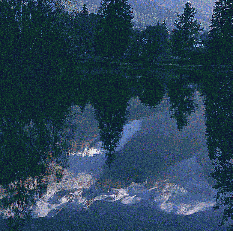 die Prachtsumgebung von Chamonix zeigt sich bruchstückshaft als Spiegelung