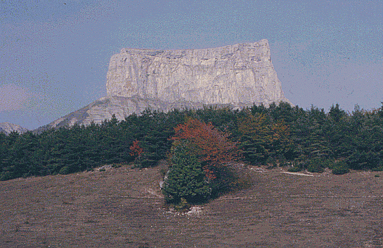 in Gestalt des schon irreal anmutenden Mont Aiguille im Vercors (eine Seite ein fast