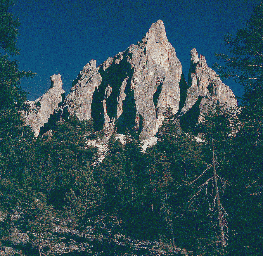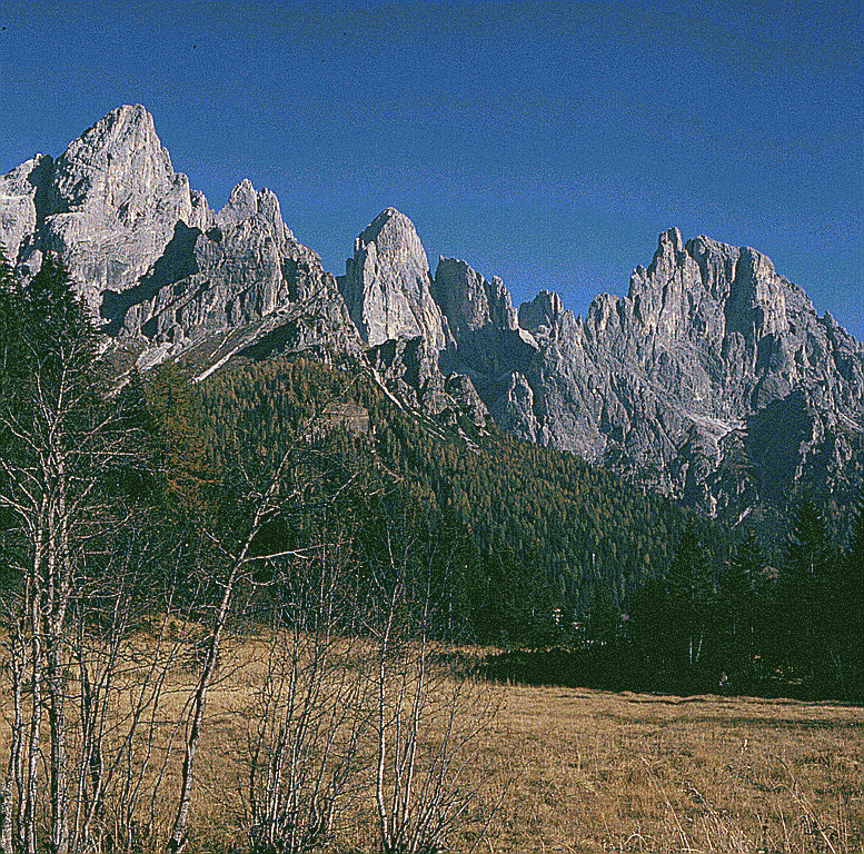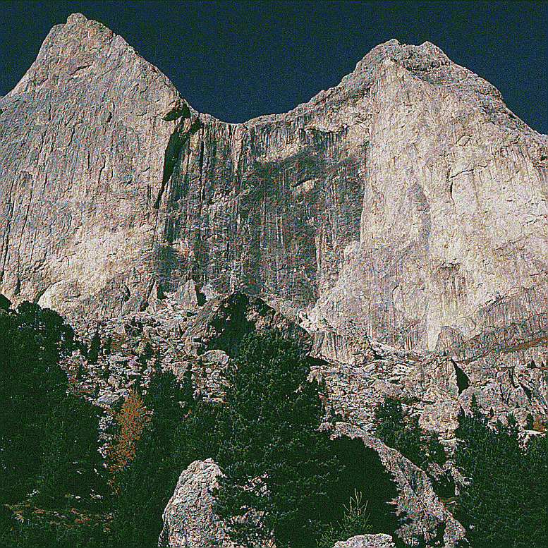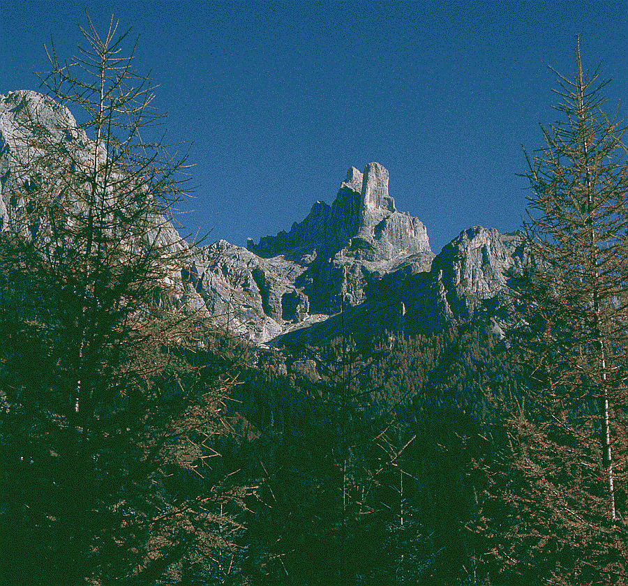 das Traumpaar der Pala: Sass Maor und Cima della Madonna mit der Schleierkante