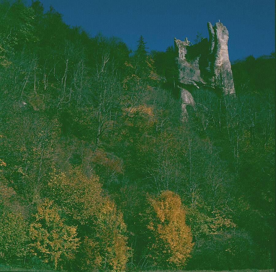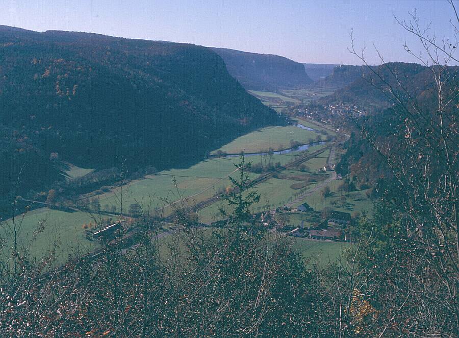 | Standort: ... Beuron, im Tal zur Burg Wildenstein Seltener Blick, der nur in der blätterlosen Jahreszeit gelingt |