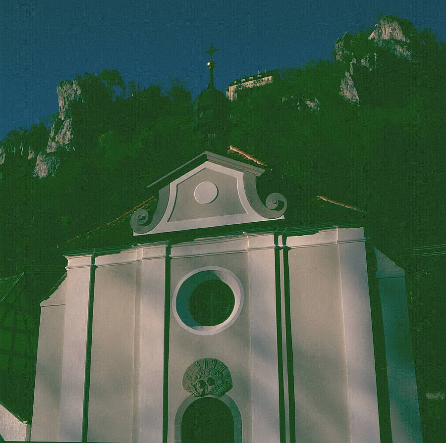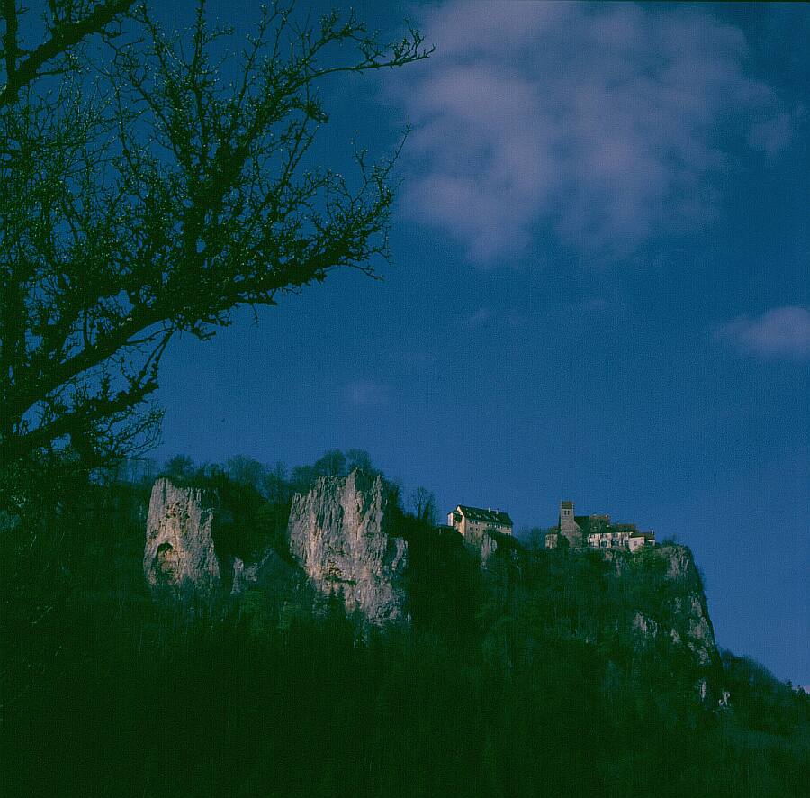 | Standort: ... Beuron, Donautalstraße unterhalb Werenwag Typischer Dreiklang hier: Kirche, Burg, Felsen |