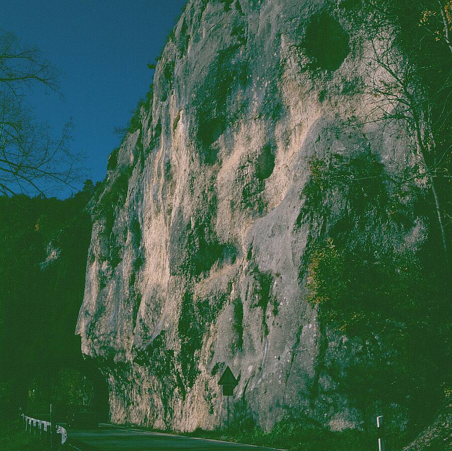 | Standort: ... Sigmaringen, Donautalstraße bei Gutenstein/Dietfurth, zur Ruine Gebrochen-Gutenstein Burgruine (Raubritter (?)): Gewagter geht`s praktisch nicht! |
