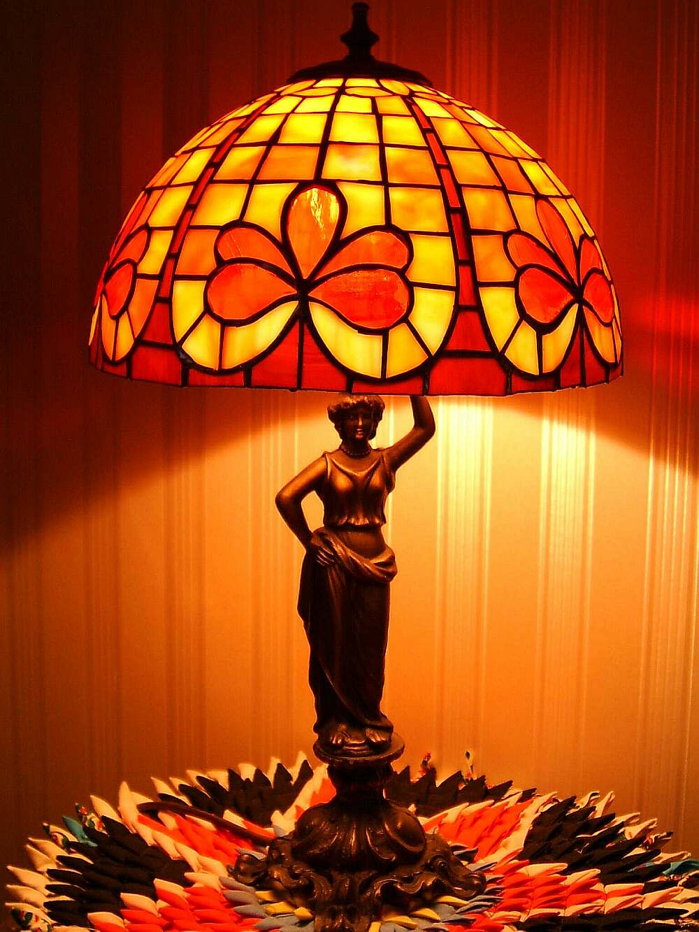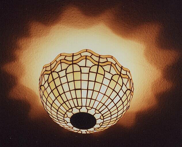 | Name: Mais Durchmesser: 30 Höhe: 15/- 3 verschiedene Gläser; hier als ausleuchtende Deckenlampe Glasteileanzahl: 324 Das Muster für die Küche |