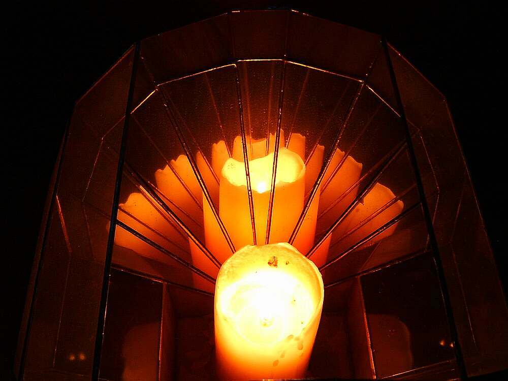 Als Lichtquelle eine Kerze, deren Licht sich durch die gegenseitige Anordnung von