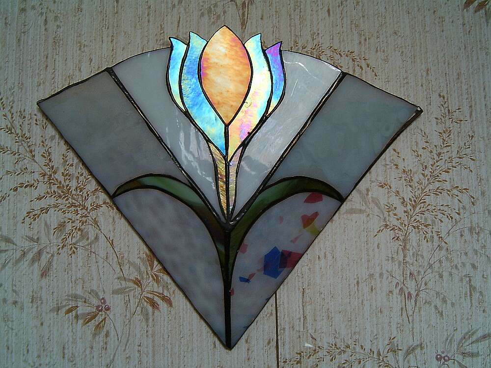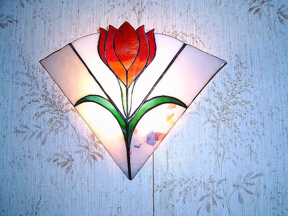 Spezieller Entwurf für Wandlampen; unten sehen Sie irisierende Glasteile im Auflicht |
