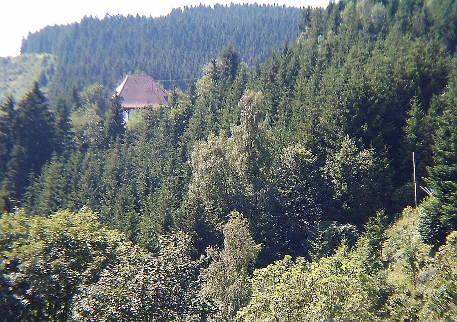 Dort oben vor der Tür erblickt man in Richtung Südost - das ist fast in Richtung Ecke oben links -