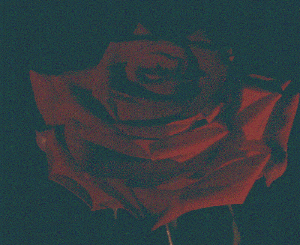 gelbe Rose, in den unteren beiden Eckbereichen je eine Zierschleife, Bildträgermaterial