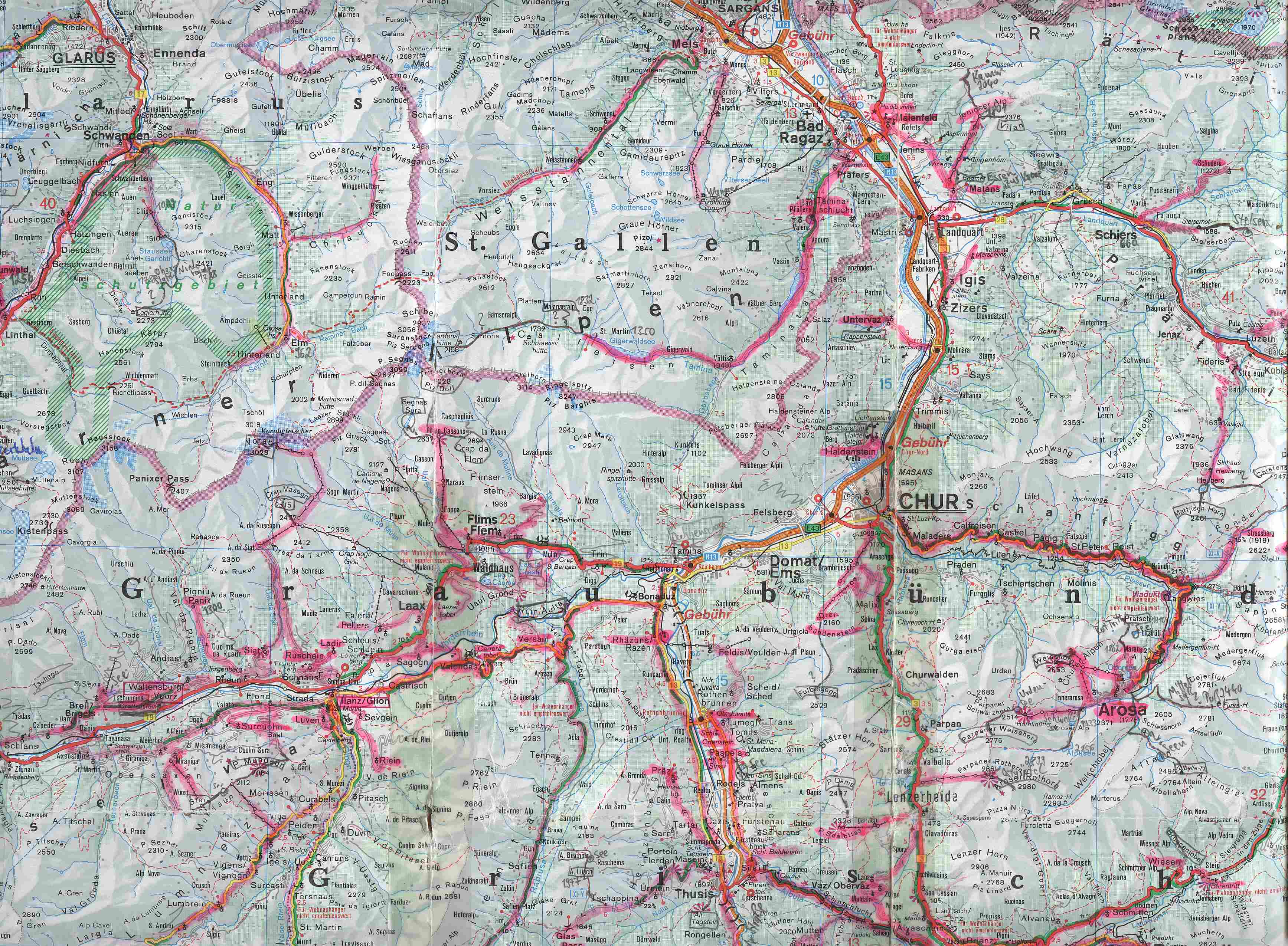 In den Randbereichen sind Markierungen evtl. auf der benachbarten Detailkarte eingetragen;