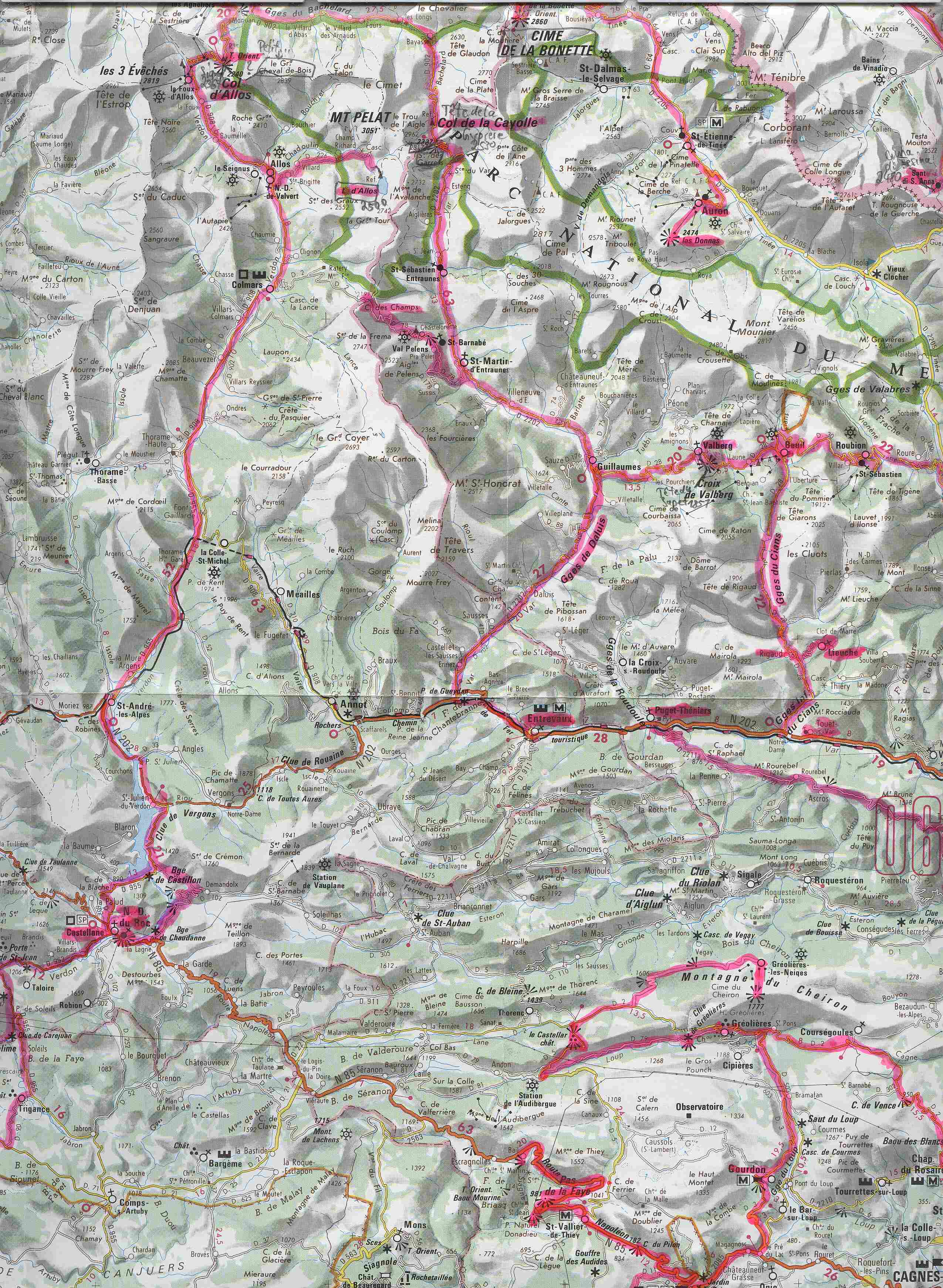 In den Randbereichen sind Markierungen evtl. auf der benachbarten Detailkarte eingetragen;