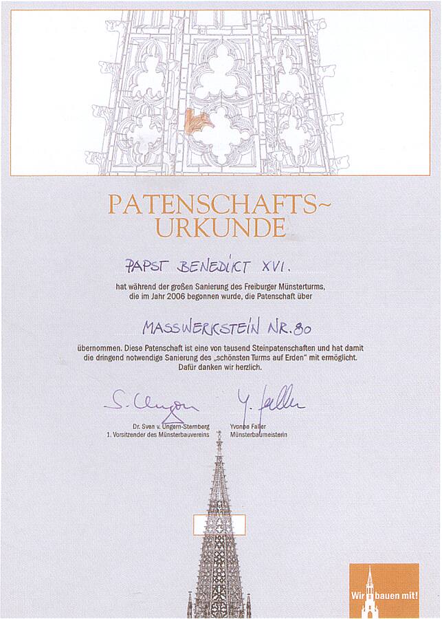 Sogar der Papst übernahm eine Steinpatenschaft für diesen Turm: