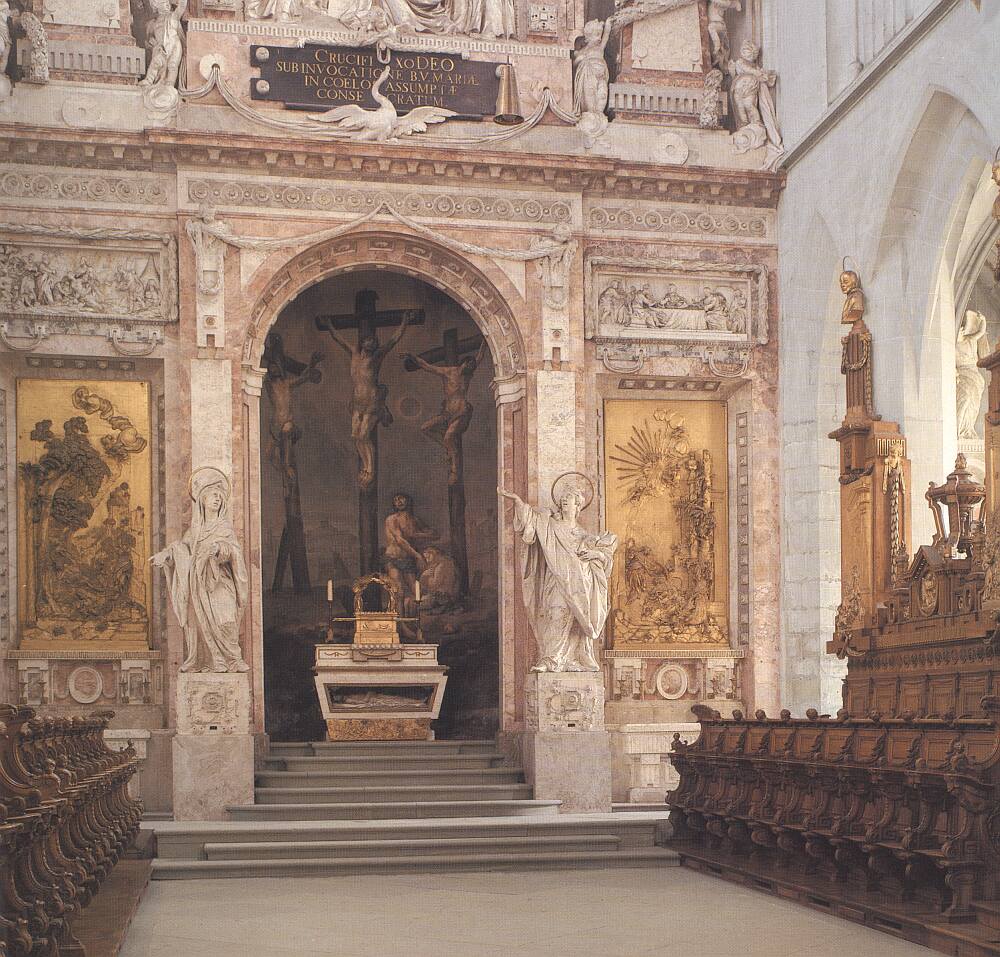 Kunst; viele, prächtige Seitenaltäre, 2 Hochaltäre (Vorder-, Rückseite)