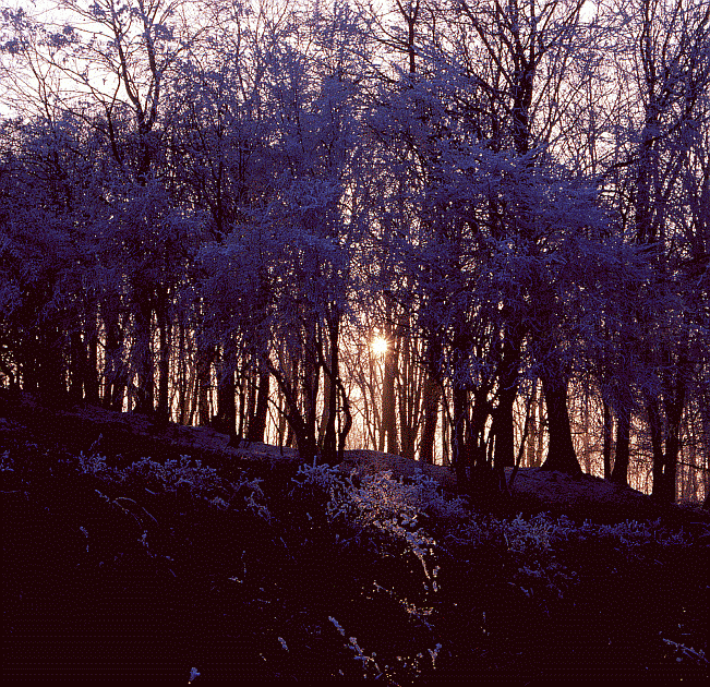 Albkante, ein von Reif verzaubertes Waldstück und die sagenhafte Lichtreflexion