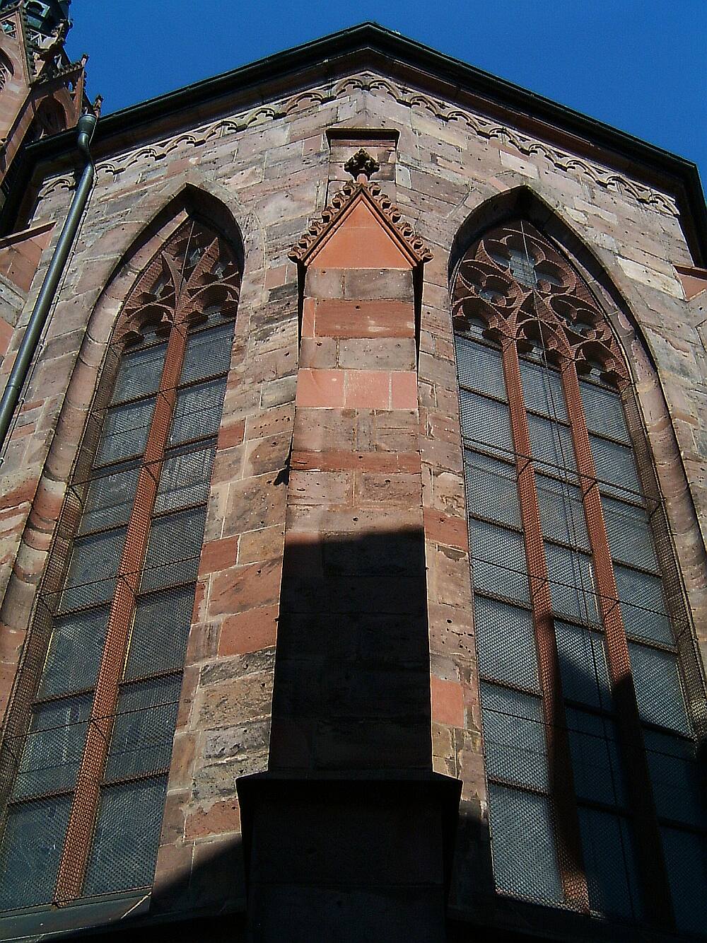 Sie stehen an der Ostseite, nicht, wie sonst üblich in der Gotik, an der Westseite.