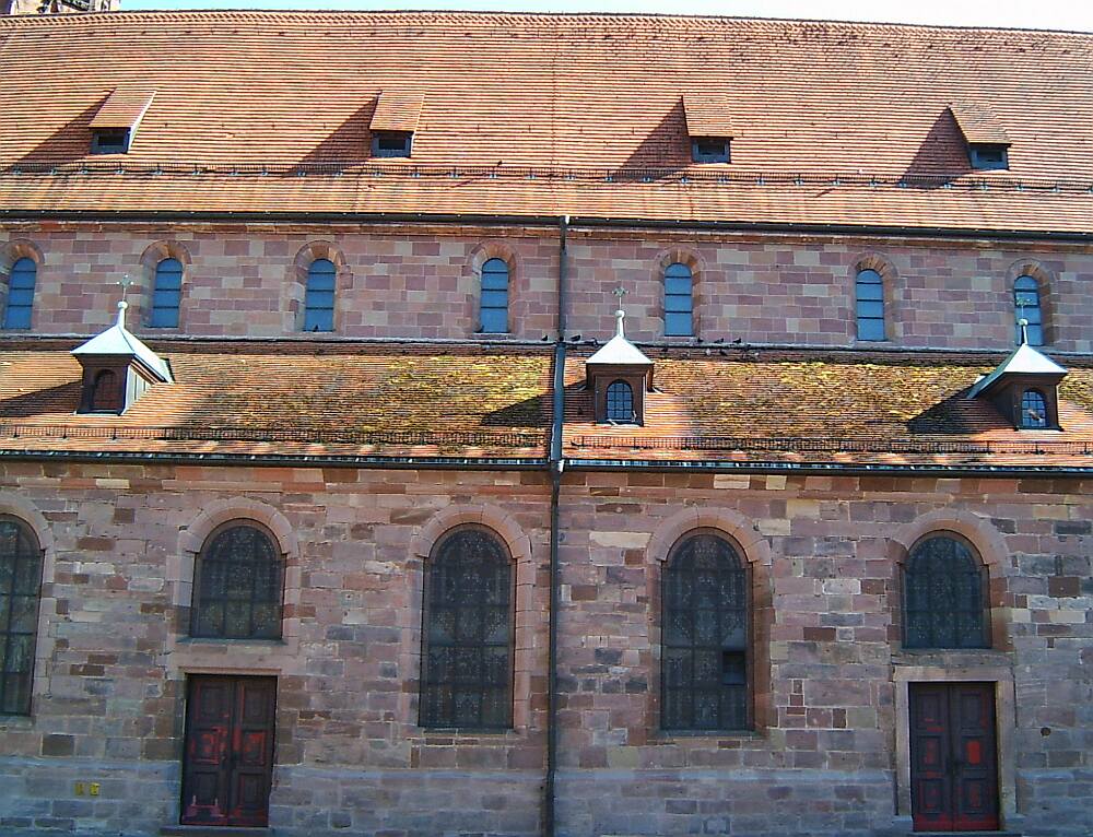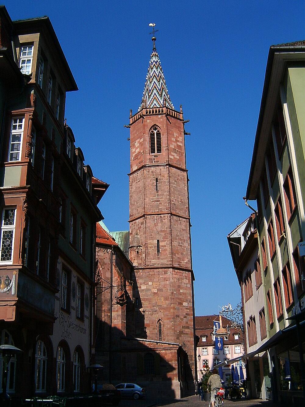Nachmittagssonne (unten Mitte). Die farbige, helle Ziegeldeckung des Nordturmes