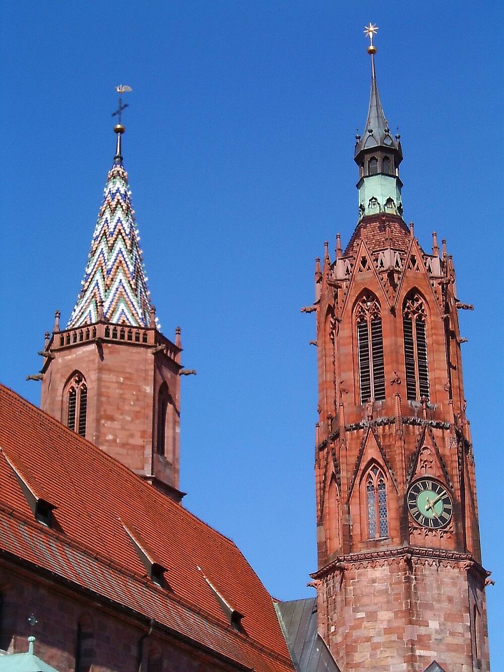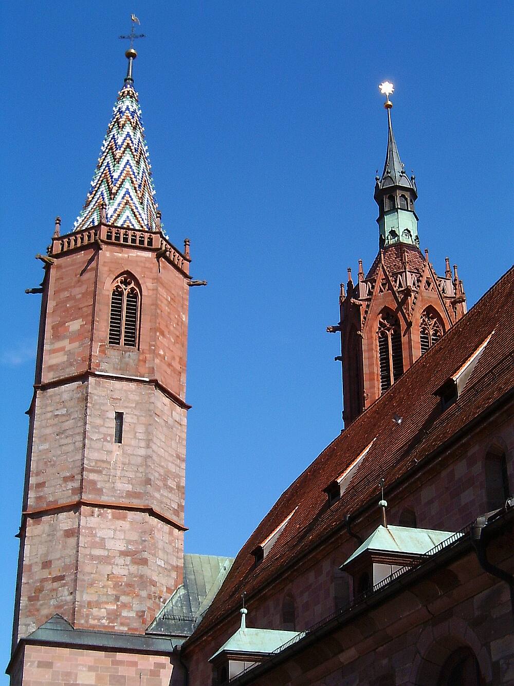 Die beiden unterschiedlichen Türme, unten romanisch, oben gotisch