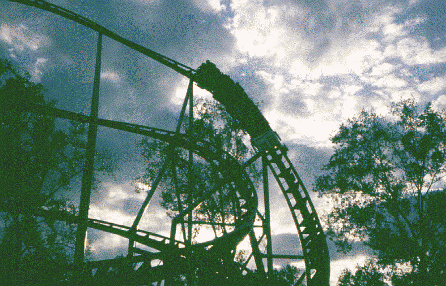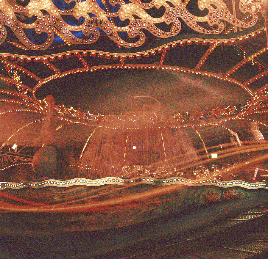 abendliche Achterbahnszenerie, ein treffendes Abtauchen in die Strophe